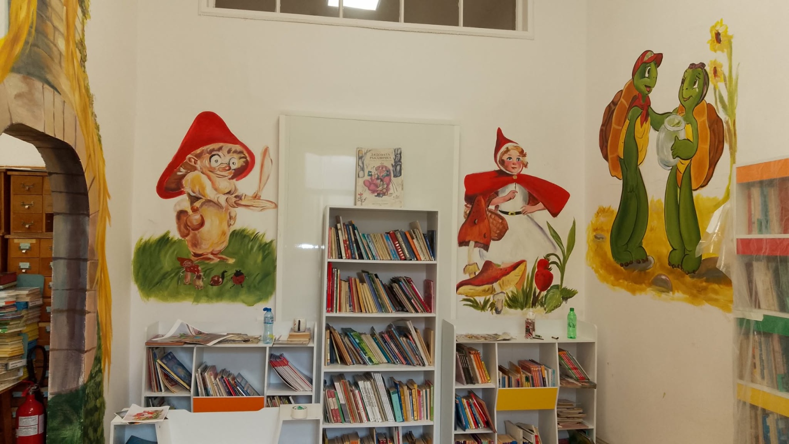 Освен че оформя пространството с рисунки на любими герои, Регионалната библиотека оборудва детската читалня и с нови красиви стелажи и пуфове.