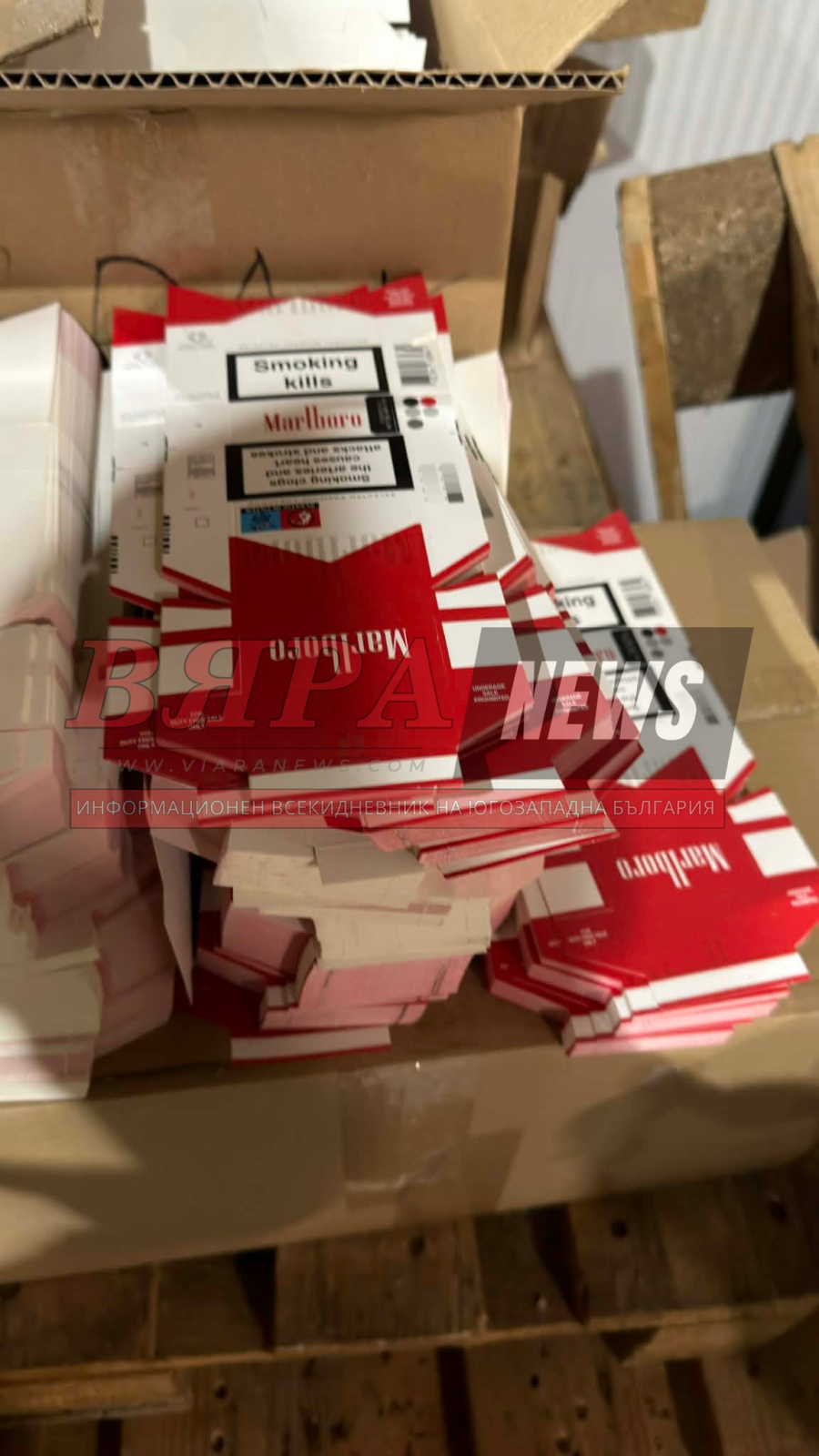 На място са открити значителни количества готова продукция – кашони с цигари, както и голямо количество нарязан тютюн, заготовки, пластмасови пълнители и чували със суровина. По първоначални данни производствената база е оборудвана с модерна техника, осигуряваща висок капацитет на производство.