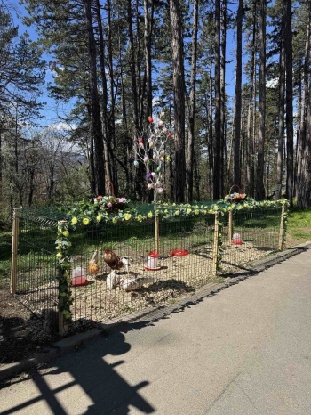 По повод Великденските празници Община Кюстендил обособи специален декоративен кът с живи животни в лесопарк Хисарлъка. Атракцията се намира под паметника на Йордан Митрев и вече привлича вниманието на семейства с деца.