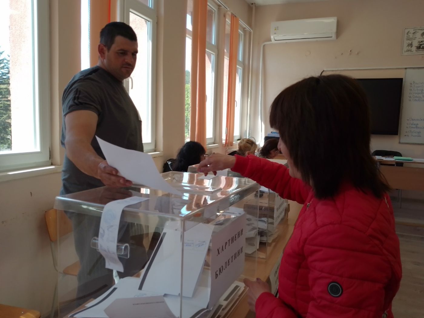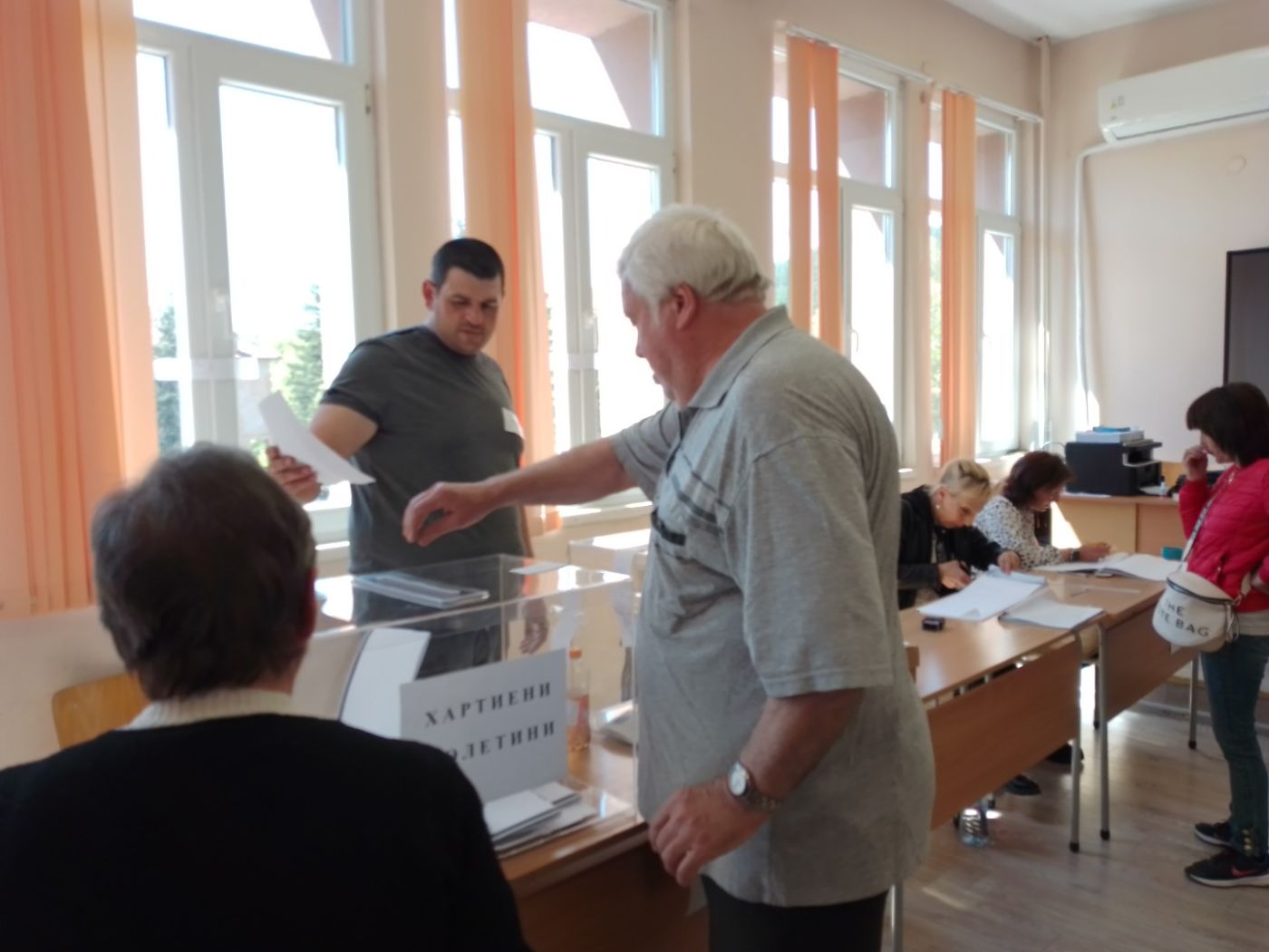 Няколко часа по-късно и на друго място – в центъра на града, изборният ден изглеждаше доста по-различно. Към 15 – 15, 30 часа в Спортната зала и ПГ “Хр. Ботев“ дошлите да гласуват бяха по- малко от хората в комисиите.