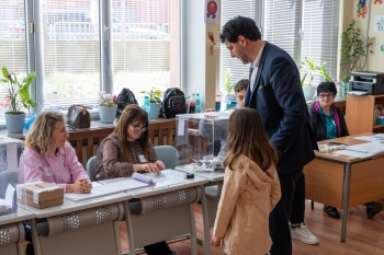 Той упражни правото си на вот в компанията на своята съпруга – преподавателката Татяна Стамболийска, както и на малката им дъщеря. Детето символично постави бюлетината в урната заедно със своя баща.