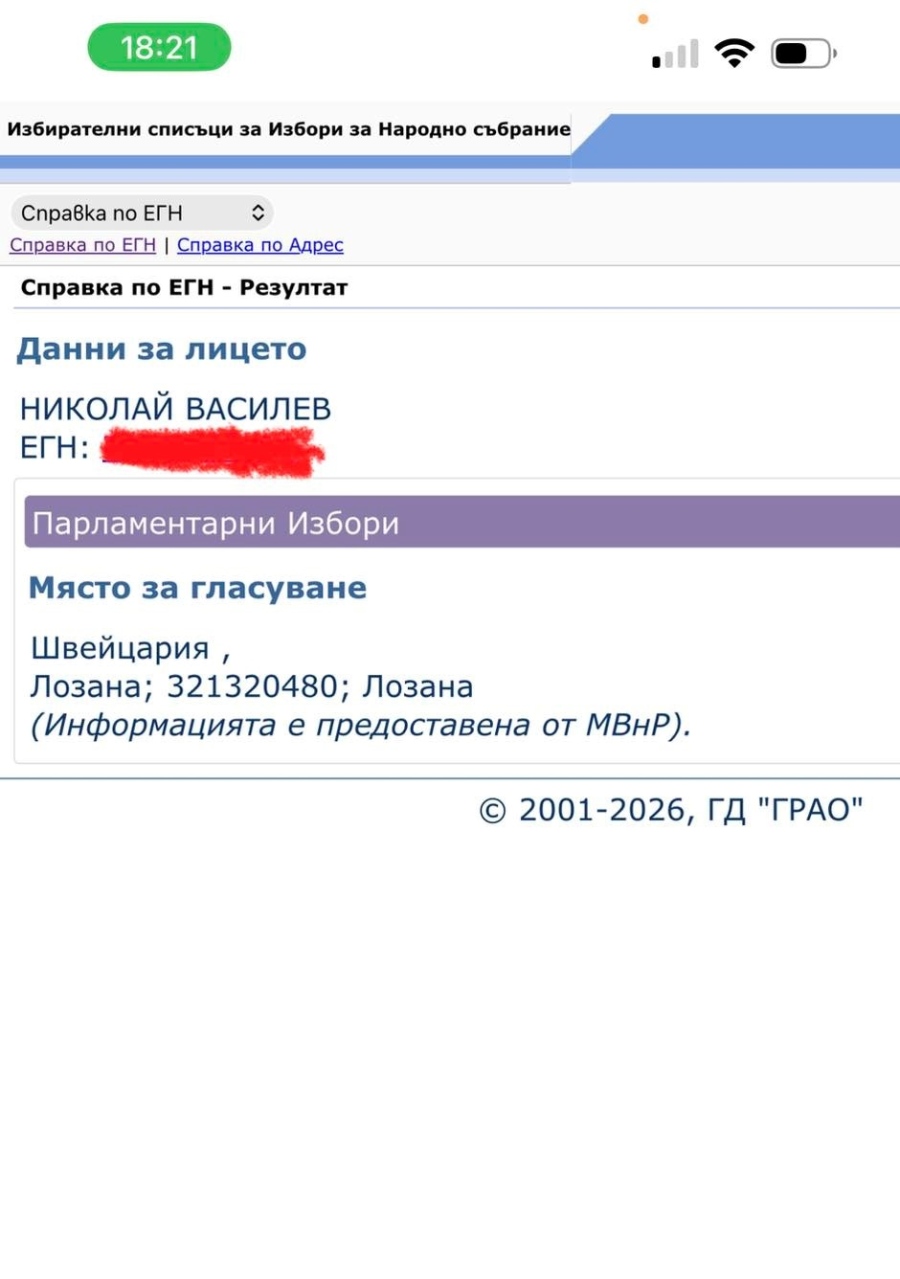Случай, който граничи с административен парадокс, разбуни социалните мрежи по време на изборния ден. Българинът Николай Василев откри, че вместо в родната си секция, името му фигурира в списъците за гласуване в град Лозана, Швейцария, въпреки че той не живее там и никога не е подавал заявление за гласуване зад граница.