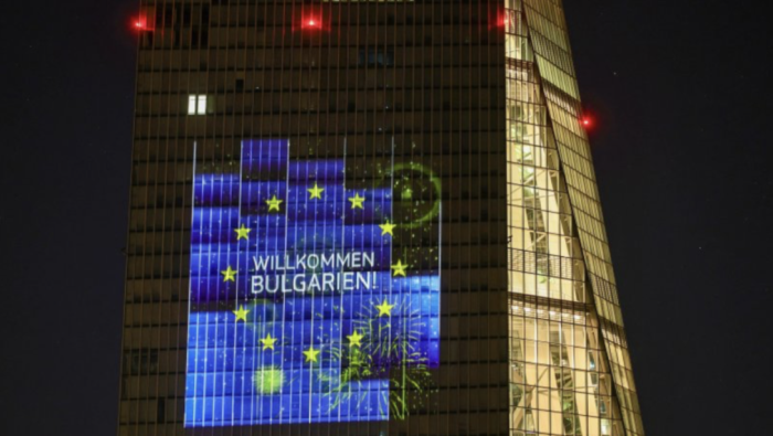 "Добре дошла, България" грейна върху сградата на ЕЦБ във Франкфурт